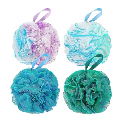 4個セットのデュアルテクスチャバススポンジ。優れた泡立ちで肌にやさしいヘチマボディスクラブ。男女兼用、大型サイズでジムや旅行にも最適。