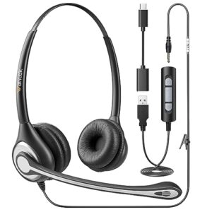 WantekヘッドセットUSB 3.5mm TypeC 両耳 ノイズキャンセリングマイク付きとオンライン制御有線PC用ヘッドホン Skype、Web会議、在宅勤務、業務用、リモートワーク、コールセンターに適用される クリアな通話 超軽量 超快適 TypeC接続線付き 【適格請求書発行対象】