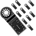 高炭素鋼/BIMバイメタル製のマルチツール替刃セットです。スターロック対応で、34mm幅・40mm切断深さ・全長95mm。ボッシュ・マキタ・リョービ等の機種に互換。木材、プラスチック、アクリル、石膏板に最適な高耐久性振動鋸刃セット。