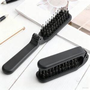 ヘアブラシ くし 天然豚毛 【180°折りたたみ式】艶々髪 静電気防止 ヘアケア/スタイリング 櫛 頭皮 携帯用ブラシ 髪質 つやサラ美髪 ABS メンズ/レディース/こども 男女兼用 すべての髪質に合う ブラック