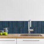 壁紙屋本舗の水はね防止シートはがせる壁紙シール。汚れ防止・防水で賃貸にも最適。キッチンやトイレにぴったりなレトロタイルデザイン、アルボルブルー。サイズ25cm×1.3m。受注生産品のためキャンセル不可。