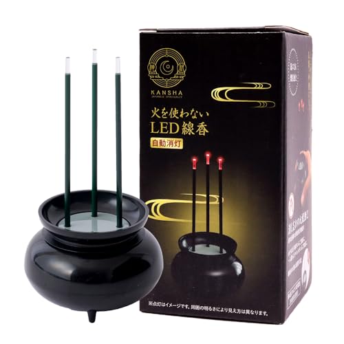 アイメディアの火を使わないLED線香は、電池式で自動消灯機能付き。本数調整可能なミニ香炉が付属し、火災の心配が無く安心して使用できます。仏壇用として最適です。