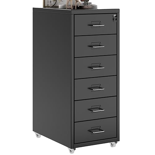 デスクワゴン 5段 鍵付き キャスター付きのスチール製オフィスワゴン。サイズは幅280×奥行410×高さ690mm。大容量で机下収納に最適。取り付け簡単で寝室やオフィス、リビングにも使用可。ホワイトカラー。
