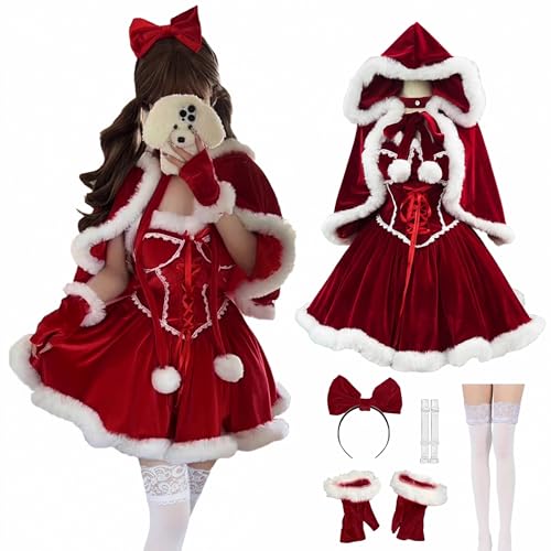 MEYOIJKのサンタコスプレは、7点セットで、可愛いワンピースとショール付き。大きいサイズあり、2way使用可能。セクシーなデザインで、新年会や文化祭に最適。