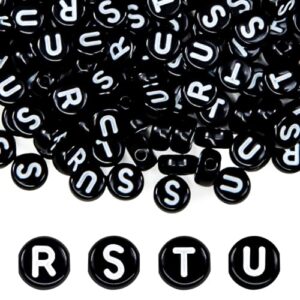 360個 R S T U レタービーズ 4X7mm ホワイト 個別 アルファベット アクリル ブラック ラウンド ビーズ プラスチック ルース バルク 友情 ブレスレット 製作 ネックレス キーチェーン DIY ジュエリー クラフト チャーム