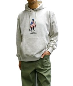 [modem design] モデムデザイン USAヒゲおじさん スウェットパーカー/フーディー (JP, アルファベット, M, ヘザーグレー)