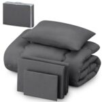 アイリスオーヤマのベッド用布団5点セット(セミダブル)は、掛け布団、枕、ボックスシーツ、枕カバー、掛け布団カバーが含まれ、洗濯可能で、ピーチスキン加工のダークグレー色です。新生活に最適です。