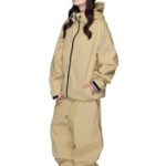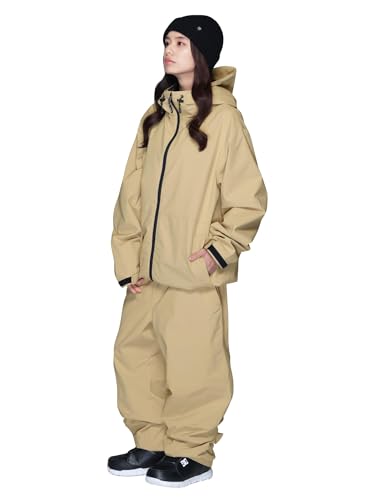 PONTAPES スノボウェア 上下セットは、耐水圧15,000mmで軽量素材を使用。中綿なしで快適な着心地を実現。Mサイズ、Lベージュ/Lベージュの色展開。スノーウェアに最適。