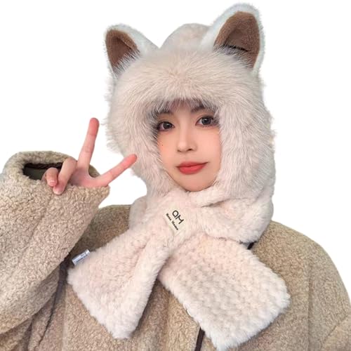 Nestkanina レディースのかわいいネコ耳ニット帽。ティペットとマフラーとしても使える、あったかもこもこ素材。秋冬にぴったりな厚手のフワフワ帽子で、防寒・保温効果あり。小顔効果も期待できるアイテム。