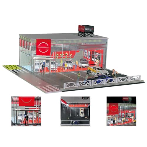 FunXylophyの1/64スケールカーショールームは、LEDライトとミニチュアアクセサリー付き。全ての1/64スケールモデルカーに適したディスプレイ用ジオラマです。