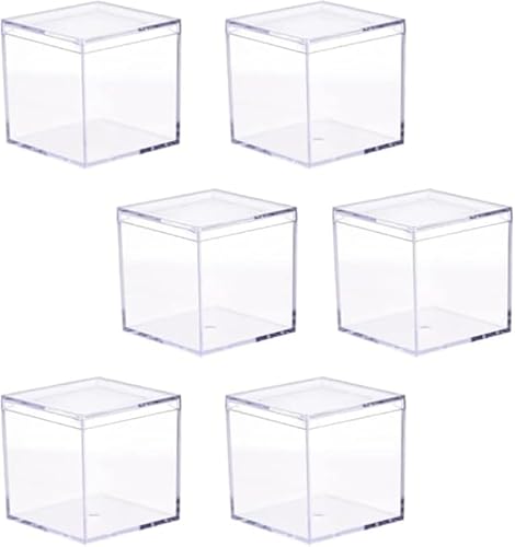 Rutexc 宝石、キャンディ、チョコレートの保管に適した、蓋付きの小さな透明な四角いアクリルプラスチックボックス、6個セット。の高価買取