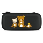 リラックマのSwitchケースは、OLEDモデルにも対応し、耐衝撃のEVA素材を採用。ゲームカード15枚収納可能で、大容量の収納バッグ。旅行用に便利なキャリングセットです。