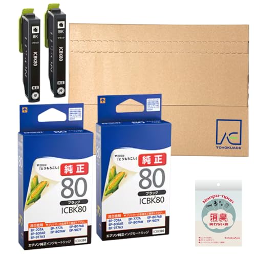 【純正品・2個セット】工プソン インクカートリッジ とうもろこし ICBK80 ブラックは、高品質な印刷を実現するための純正インクです。対応プリンターでの使用を推奨し、安定した印刷結果を提供します。