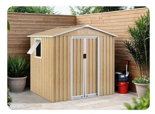 物置 屋外 スチール製 幅194×奥行162×高さ184cm 床材補強フレーム付き 引き戸 両開き 可動棚 すべり出し窓 換気口付き 防水 防錆 屋外収納庫 倉庫 ベランダ 庭 ガーデニング 大型収納 組立式 (ナチュラル) 高価買取中