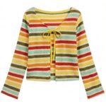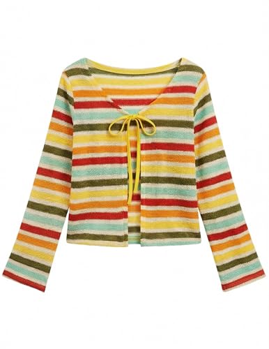 ZAFULの女性用かぎ針編みカーディガンは、ストリップイエローの長袖カバーアップトップスです。水着の上に着用してリゾート気分を高めます。