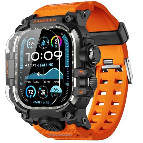49mm一体型ケースバンドは、Apple Watch Ultra 3/Ultra 2/Ultraに対応。スポーツ・アウトドア用で防汗・通気性に優れ、落下防止・耐衝撃設計。強化ガラスフィルム付き、オレンジ色。