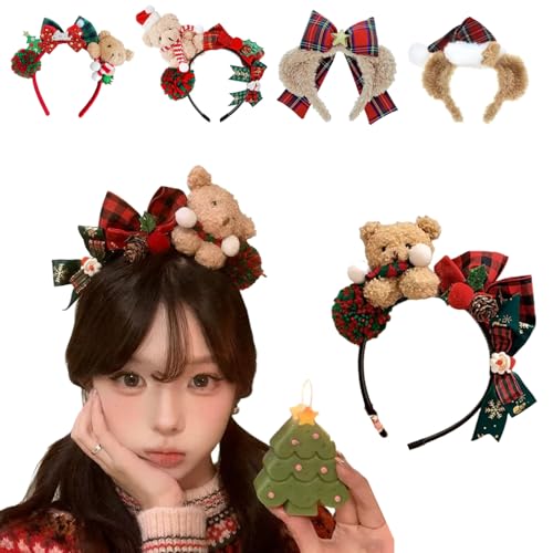 2025年クリスマス飾り、可愛いクマデザインのカチューシャ。レディース・子供用のヘアアクセサリーで、パーティーや仮装、コスプレに最適。プレゼントやギフトにもおすすめ!