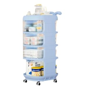 Lunyong ベビーワゴン キャスター付き 4段 ベビー用品 収納ワゴン 引き出し 取っ手付き 赤ちゃん オムツ収納 多機能 収納カート 移動便利 かわいい 大容量 (ブルー)