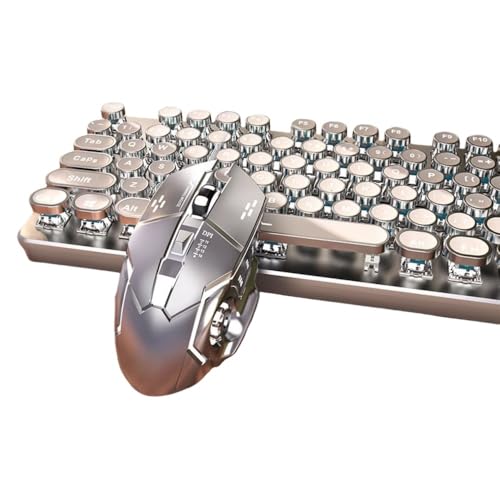 AOUMKメカニカルゲーミングキーボード&マウスセット。ヴィンテージスチームパンクデザイン、104キー、LEDバックライト、有線USB接続、メタルプレート、赤軸、マクロ機能付きマウス。
