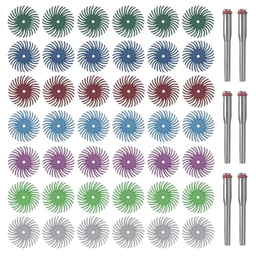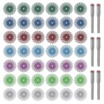Hoomyew 混合グリット42pcs 1″ラジアルブリスルディスクキットは、1/8″シャンク対応のロータリーツール用研磨ブラシです。ギャップポーリングパッドも含まれています。