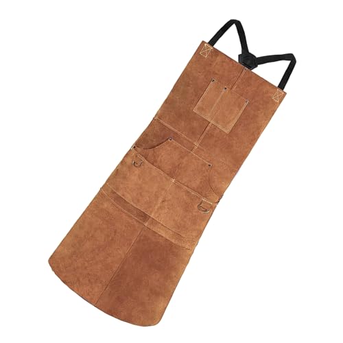 YROHGKPNの溶接エプロンは、耐熱性・難燃性に優れ、専門家向けに設計されています。複数のポケットで工具を収納可能な耐久性の高いレザー製です。