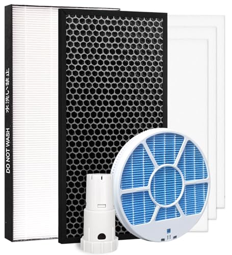 NEWFEI加湿空気清浄機用交換フィルターセット。FZ-Y80MF加湿フィルター、FZ-AG01K1イオンカートリッジ、FZ-D50HF集じんフィルター、FZ-D50DF脱臭フィルター、使い捨てプレフィルター3枚含む。互換品。