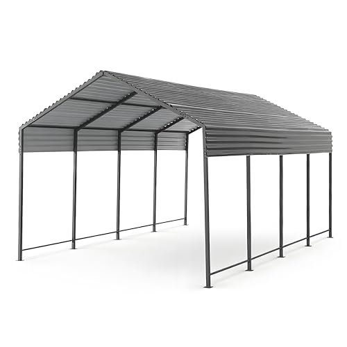 スチール製大型カーポート。頑丈で防水・防錆機能付き。屋外収納に最適なカーシェルター。サイズは奥行450cm、幅300cm、軽自動車やバイク、自転車倉庫にも対応。専用エキスパンションボルト付属。