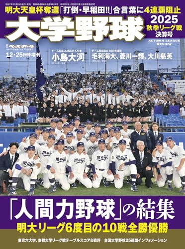 大学野球2025秋季リーグ決算号(週刊ベースボール12/25号増刊)は、最新のリーグ戦の結果や選手の活躍を詳しく解説。特別インタビューや分析も掲載され、大学野球ファン必見の一冊です。