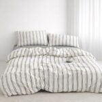 布団カバー3点セット(シングル)は、和洋兼用でベッド・敷布団に対応。さらっと快適なピーチスキン加工で洗濯可、速乾タイプ。ストライプ柄で新生活にもぴったりのオールシーズン使用可能な寝具カバーです。