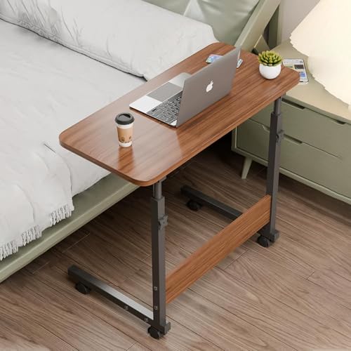 キャスター付きの昇降式サイドテーブル。移動が簡単で、簡単にインストール可能。調整バックル付きで、サイズはL(40*80*90cm)、色は棕色。