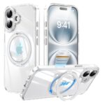 TekkaのiPhone 16用ケースは、360°回転スタンド、MagSafe対応、リングスタンド付き。米軍MIL規格の耐衝撃設計で、薄型・軽量。クリアで指紋防止、黄変防止機能もあり、カメラ保護や動画視聴に便利です。
