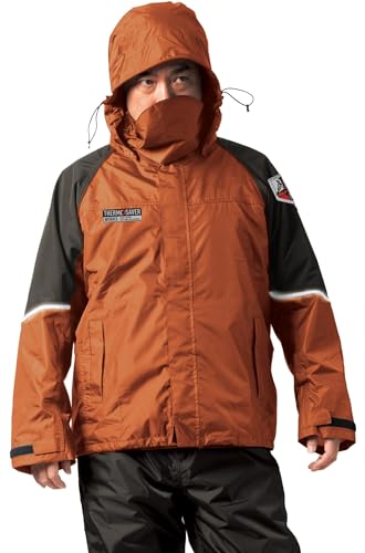 マック(Makku)のウルフシールドレインジャケットAS-3170は、3層構造で耐水圧15000mmH2O。透湿性5000g/m2-24h、非フッ素撥水加工。ヘルメット対応のフード、風を防ぐフェイスマスク付きで、動きやすい設計の作業着。
