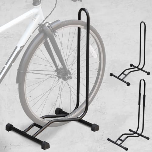 life_martの自転車スタンドはL字型で、1台用(20〜29インチ対応)。前輪差し込み式の安定設計で、室内外で使用可能。簡単に組み立てられ、ロードバイクやMTBにも対応。クッション付きで転倒防止。