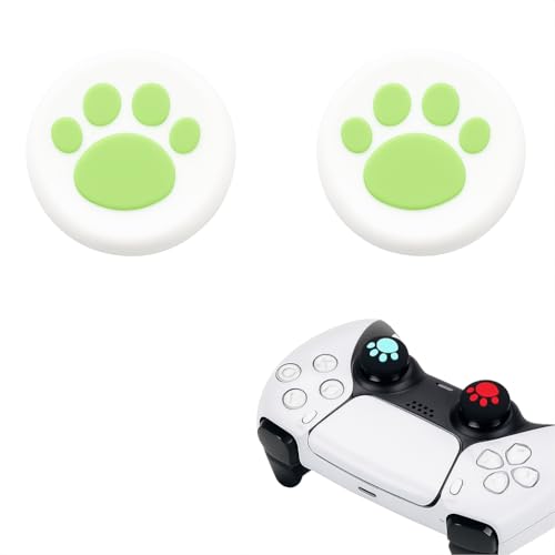 PS4/PS5/Xbox 360/Xbox One対応の肉球デザイングリップキャップ。アナログスティックを保護し、快適な操作感を提供。ホワイトグリーンカラーで可愛らしさと機能性を兼ね備えた商品。