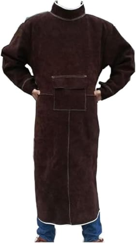 牛革作業エプロン 防炎耐熱タイプの120cmサイズ。耐久性に優れ、火に強い素材を使用。料理や工事現場での作業に最適。調整可能なストラップでフィット感も良好。