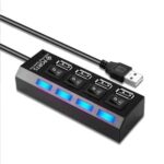 USB2.0ハブは、4ポートの電源付きで480Mbpsの高速データ伝送が可能。セルフパワー/バスパワー対応、独立スイッチ付き。Android、Windows、MacBook、Switchなどに対応。43cmの黒いケーブル。