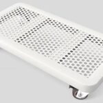 サーバーラックは金属製で、キャスター付きの移動式デザイン。デスク下に収納可能で、サイズは300mm×200mm。色はホワイトで、機器の整理や移動に便利です。