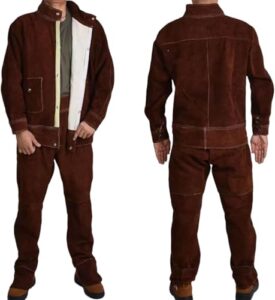 作業服 上下セット 溶接防護服 耐熱 防炎 高温耐性 通気性 耐久性 動きやすい やけど対策 ツールポケット 作業着 上下セット 溶接機作業着 難燃作業着 (紺色,XXX-Large)