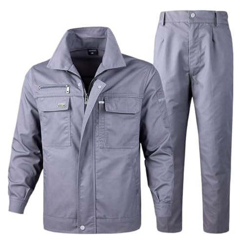 / 作業服 上下セット メンズ 作業着 長袖 2点セット ワークウエア ジャンパー ズボン 大きいサイズ ワークユニフォーム 通気性 防汚 吸汗 工場 庭 畑 土木 溶接機 工事 春 秋 冬 (グレー,L)