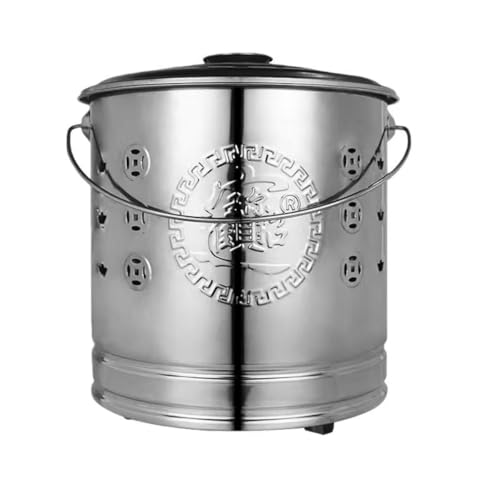 家庭用焼却炉、ドラム缶焼却炉、蓋とハンドル付き 燃焼バケツ 紙、落ち葉、木のゴミを燃やすのに使用されるパターン付き (29cm)