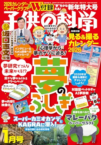 子供の科学 2026年 1月号 特大号は、最新の科学情報や実験が満載。別冊付録もついており、楽しく学べる内容が特徴です。子供の好奇心を引き出す、魅力的な雑誌です。