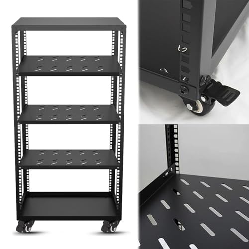 2Uロック付き引き出し搭載のオープンフレームサーバーラック。9Uから24Uまでのサイズ展開で、ローリングモバイルネットワークラックとしてIT及びAV機器の収納に最適。(18U, D 72.3cm)