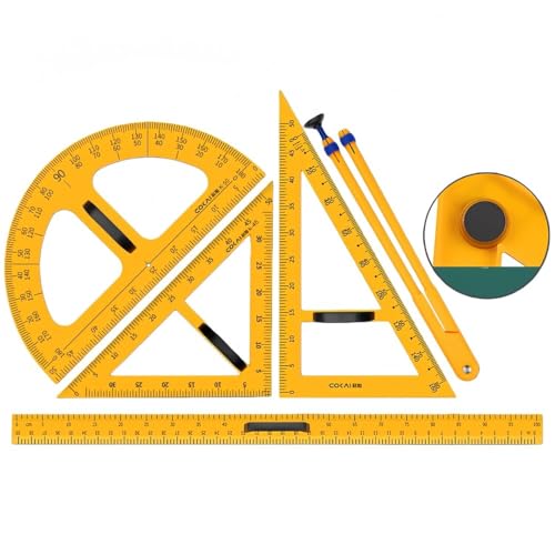 BRZU 教育用定規セット、強力磁石付き、5点セット、黒板とホワイトボードの描画用、学校教室の定規、三角定規、仕切り、測定定規、数学幾何学ツール、教師の指導用、円を描くための黒板、教師に最適、小学校と中学校の数学の教科書と教育用品。 ([強力マグネット] 5点フルセット – 強化版&厚みアップ)の高価買取ITEM