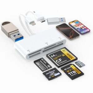 【2025年 MFi認証】 6in1 SDカードリーダー iPhone/iPad/Android/PC対応 Lightning/USB-C/USB-A – SD/TF(Micro SD)/MS/XD/CF/Type-A カードリーダー 高速転送 最大2TB対応 写真・動画・データ移行 双方向コピー