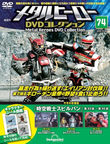 メタルヒーローDVDコレクション第74号は、時空戦士スピルバンの第33話から第35話を収録した分冊百科です。特典としてDVDが付いており、ファン必見のアイテムです。