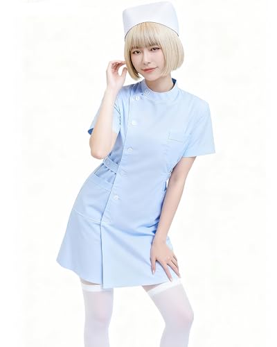 PikaBellaのナースコスプレは、大きいサイズのセクシーなナース服です。ハロウィンや仮装にぴったりで、可愛い女医スタイルが楽しめます。XLサイズ、ブルーの服と帽子の2点セットです。