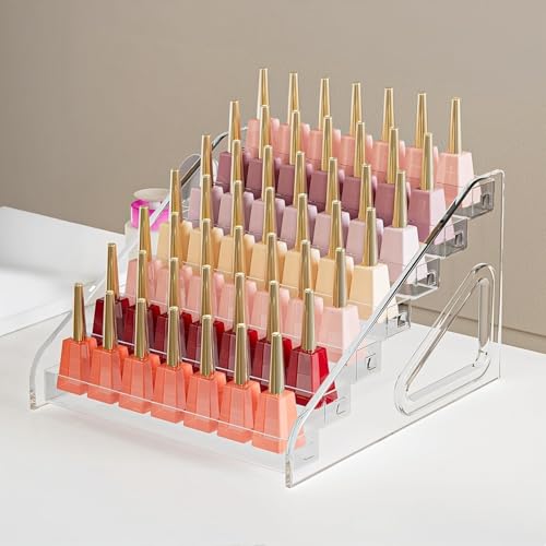 Belandiの7段アクリルネイルポリッシュディスプレイオーガナイザーは、ネイルペイントやサングラス、エッセンシャルオイルのスタンドラックとして使え、透明なデザインで美しく収納できます。