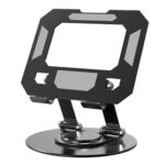カーボンスチール製のタブレットスタンド。360度回転可能で、折りたたみ式リフティングデザイン。最大12.9インチのタブレットやモニター、電子書籍リーダーに対応。