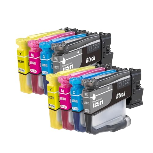 J-ECO製のブラザー互換インクLC511-4PKは、顔料4色セット×2で、ISO14001、ISO9001、CE、SGS認証工場で製造。残量表示機能付きで安心して使用できます。