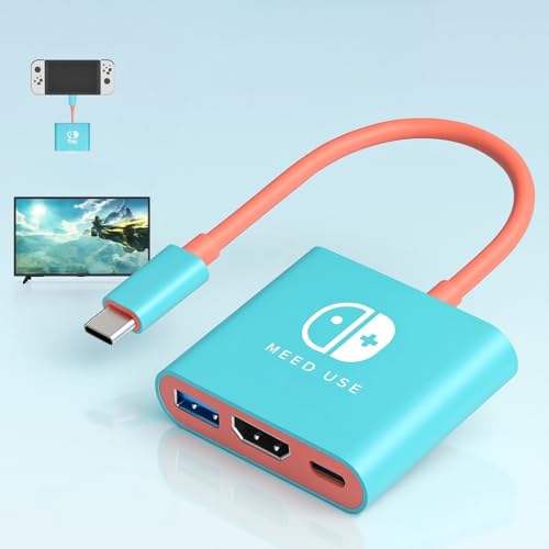 Nintendo Switch用のポータブルドック、3ポートUSB CマルチポートAVコンバーター。4K/1080P対応で、スイッチをテレビに接続可能。カラーはブルー。